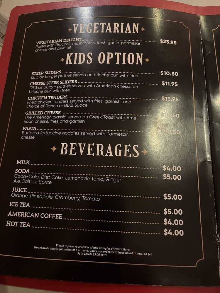 Whether you're in the mood for a classic steak sandwich, a hearty burger, or a prime steak dinner, Golden Steer Steakhouse offers something for everyone. With its affordable prices and solid quality, this local gem is worth a visit for a taste of old-school American dining.